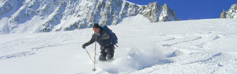 Kondition für Gehzeiten bis 2 h, gute Fahrtechnik im Tiefschnee.